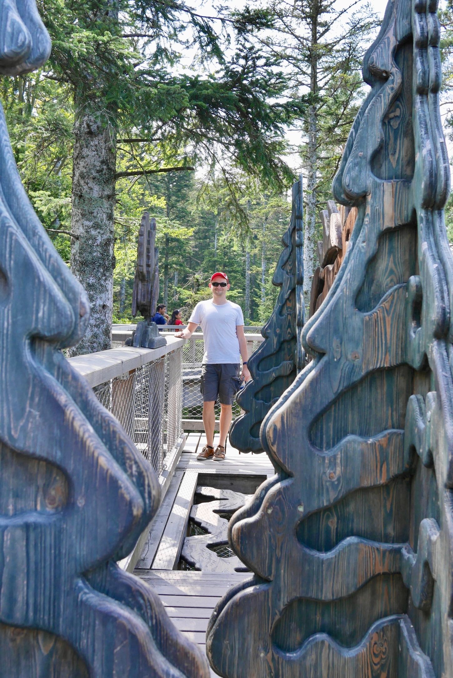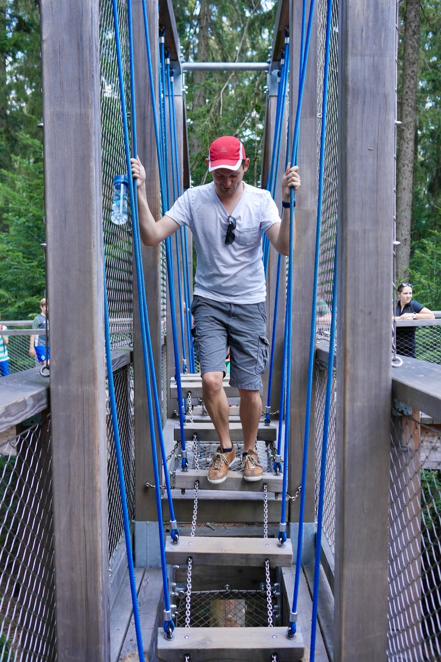 We bought our ticket at the entry and started walking on the very nicely built bridge between the treetops. Along the way we saw lots of trees, birds and squirrels. The bridge is about 20 meters above the ground and 1,25km long.