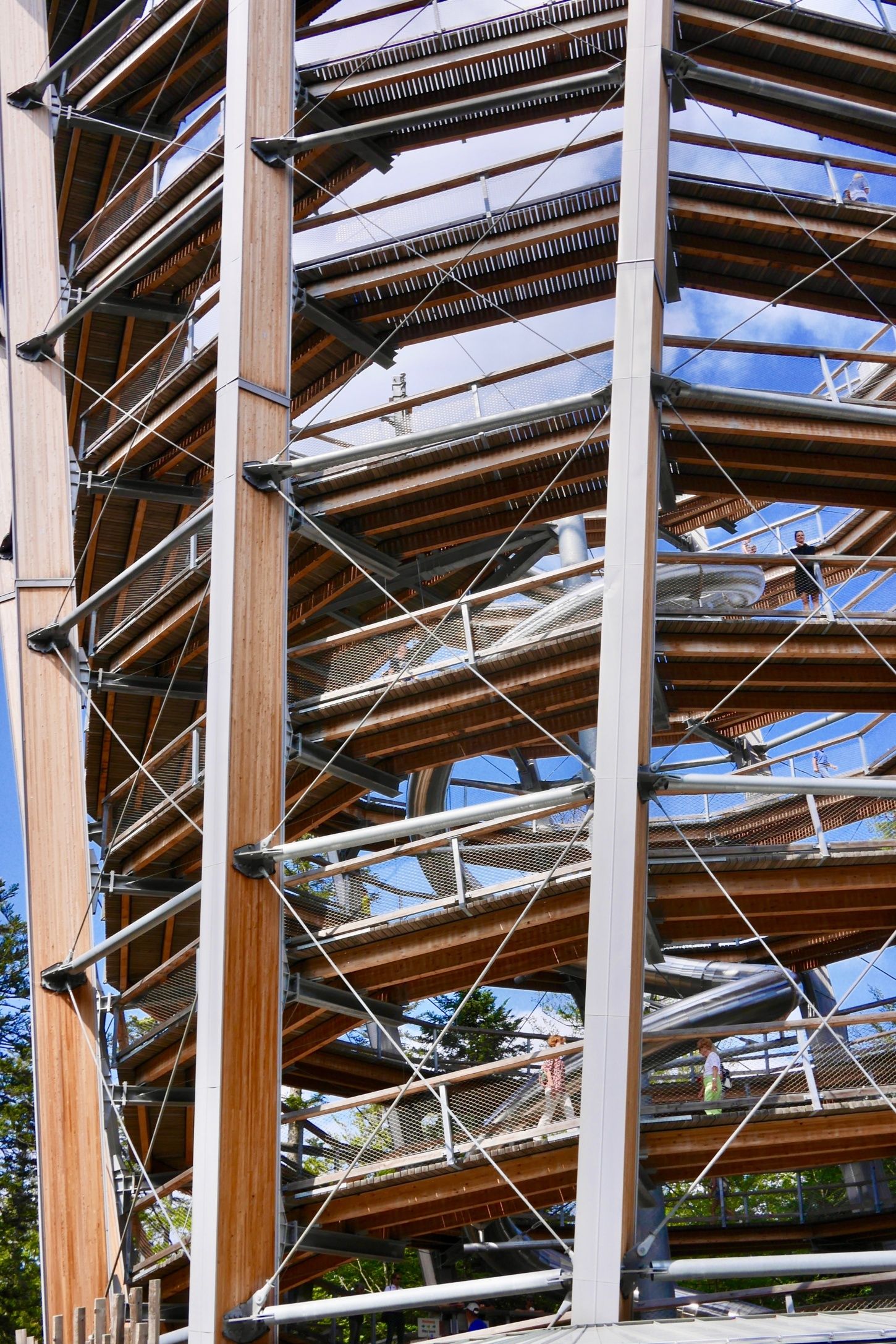 At the end of the bridge, there is a big tower with about 9 or 10 levels. Walking up I felt completely safe and I didn't feel like I used much energy because it was so flat.